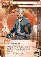 A pesar de que hubo un poco de confusión acerca de con que sets se podia jugar la mayoría de la gente entendió que se podía jugar con el set base y las tres primeras expansiones. El hacker que escogí fue Noise con una baraja de virus con Personal Workshop ya que la baraja que jugaba habitualmente de Gabriel usaba bastantes cartas de colecciones futuras.